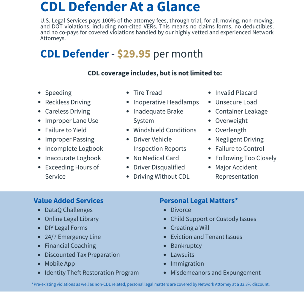 ICSA and U.S. Legal Services (USL) are proud to announce their partnership to provide and promote safety tools for the independent contractor professional driver. Understanding the individual needs of independent contractors and the regulations they face, we have developed a suite of coverages specifically for this community – including the Professional Driver Business Advantage at no additional cost to the driver.